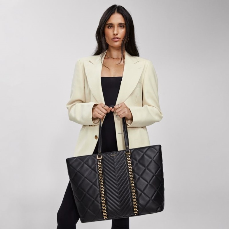Don't compromise on fashion (or function!) with this large quilted tote bag with striking chain detail.