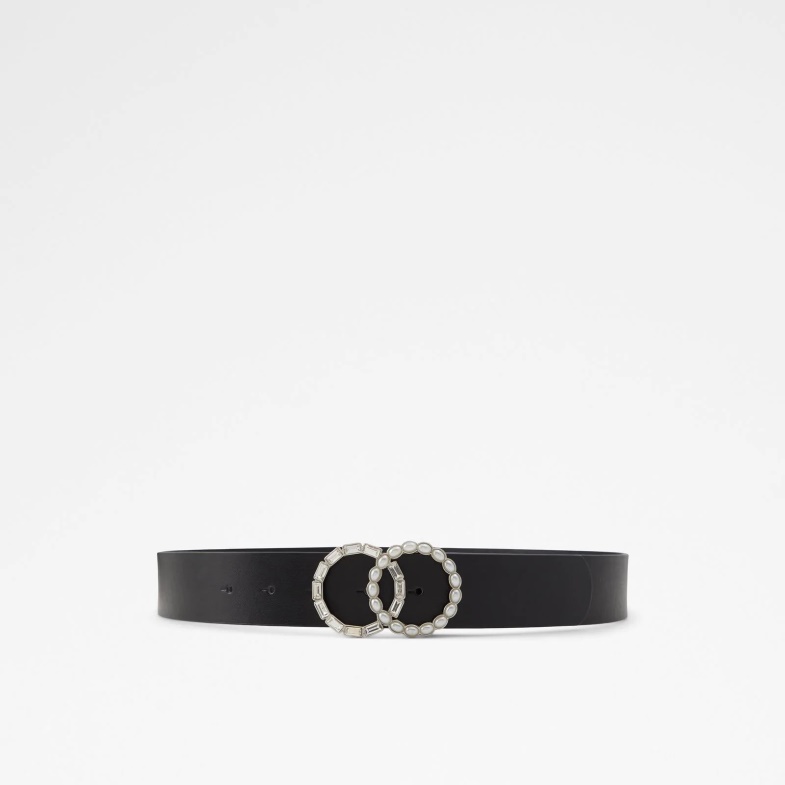 Dress up any business outfit with this sophisticated-looking womenᄀᆵs belt. Simple, jet-black strap with silver-tone buckle delivers a classic elegance with itᄀᆵs interlocking hoop design, Pearl and clear crystal embellishments add a subtle of touch of bling.