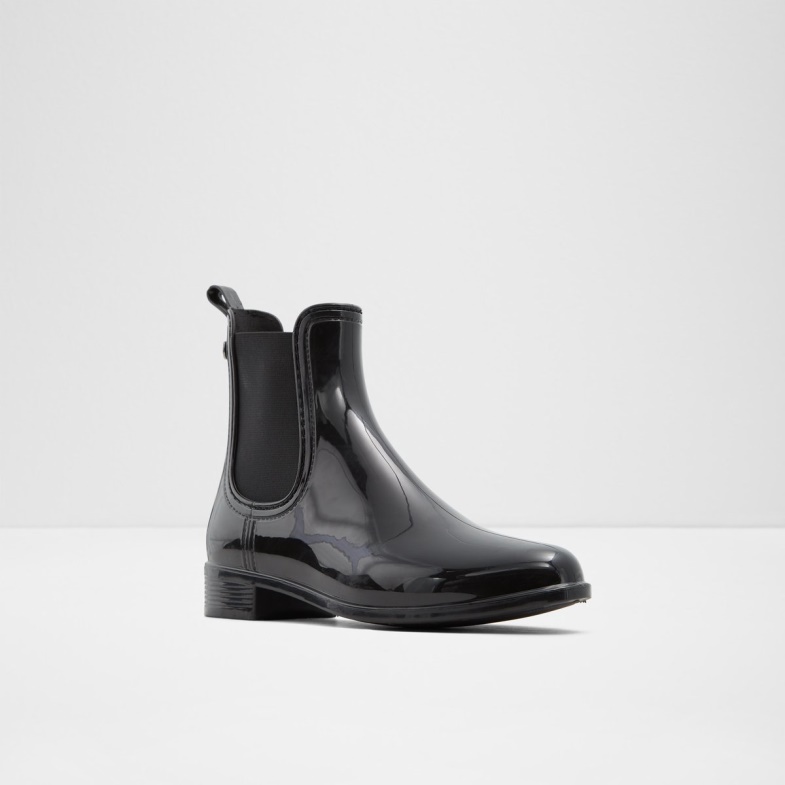 Fashion Black Synthetic Shiny Rain Chelsea Rain Boot Aldo