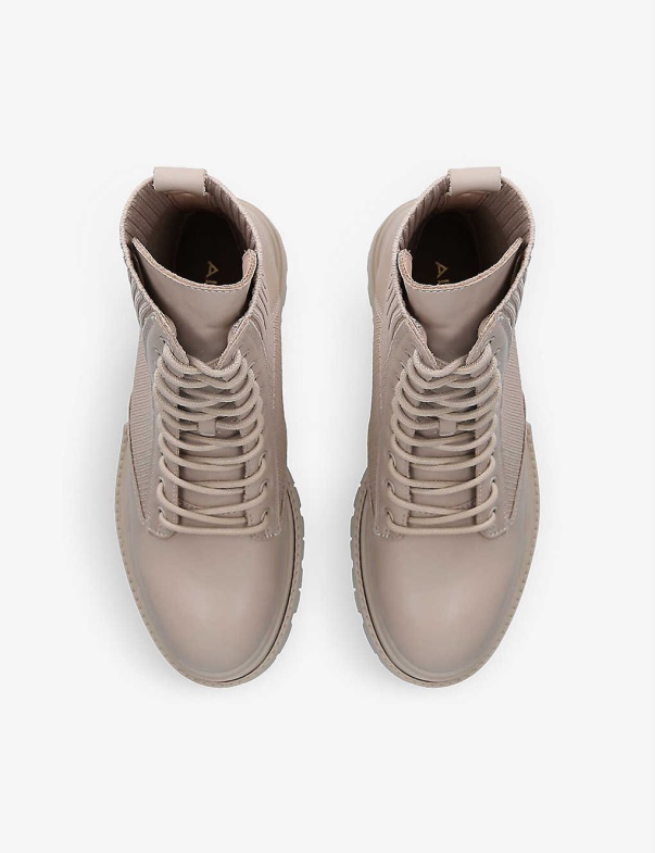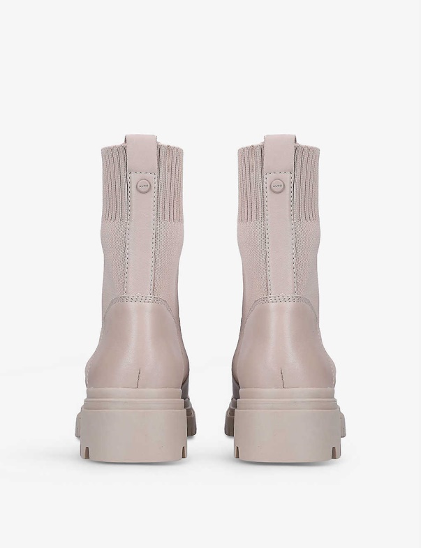 Beige Fashion Aldo Reflow Knitted-Panel Leather Ankle Boots