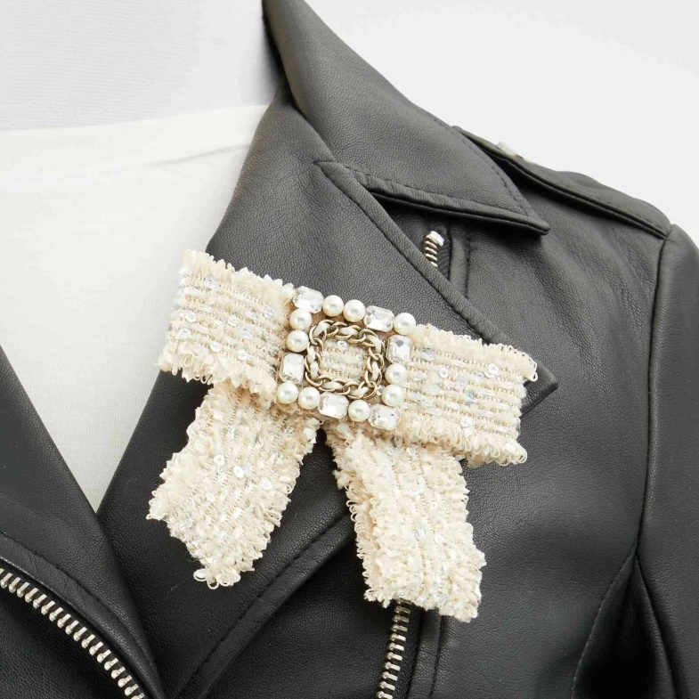Take dressy-casual on-trend with this elegantly blinged-out brooch. Neutral fabric backdrop features a pearl and crystal embellishment that brings just the right amount of sparkle to your business day.