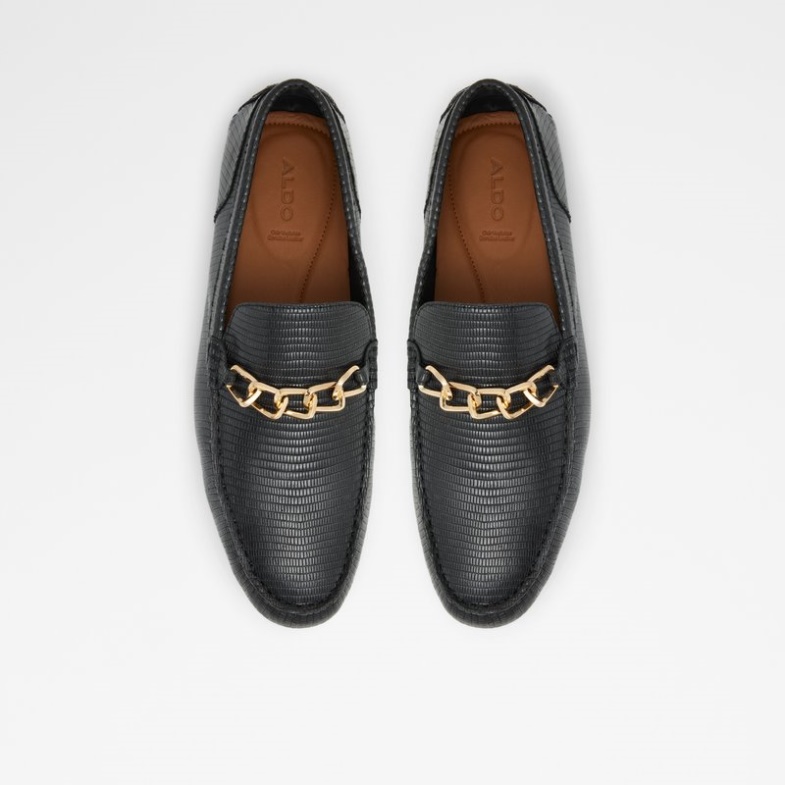 Adorned with delicate chain detailing, these lizard skin embossed drivers are all about sleek, effortless style.