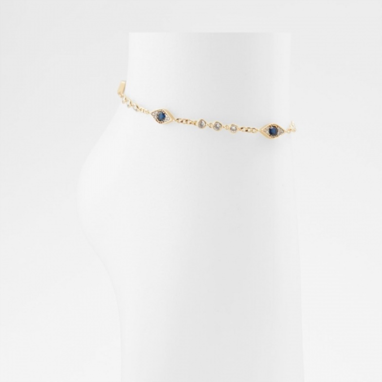 Glam up any footwear with this elegant gold-tone ankle bracelet. Clear and deep blue crystal stations elevate this simple look to an eye-catching accessory.