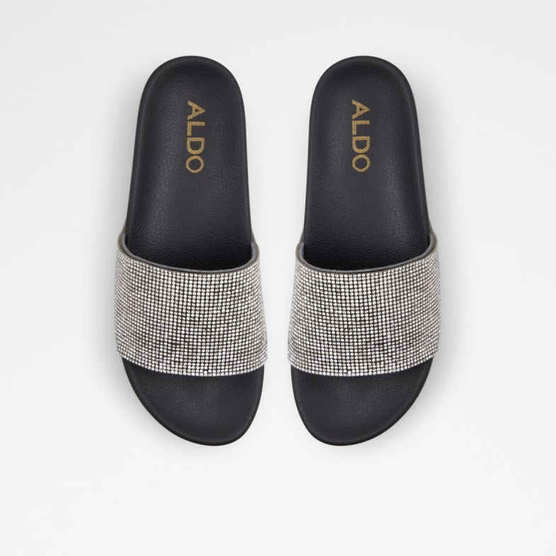 Fashion Aldo Black-Silver Multi Retrograde Flip Flops
