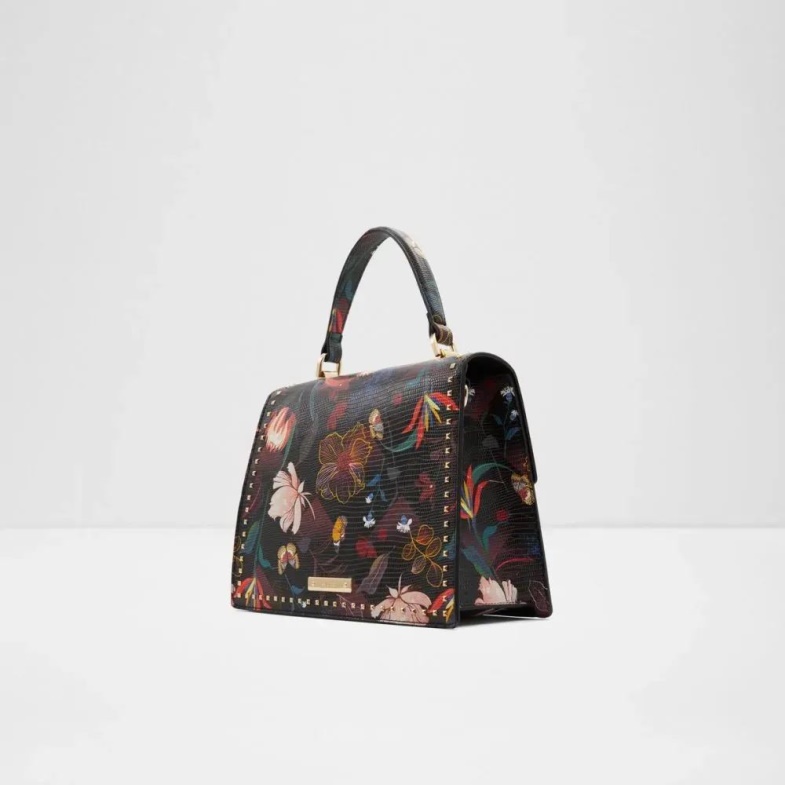 Bringing the wow factor with you wherever you go, this flower print top handle bag features stud detailing that guarantee head turns when you enter a room.